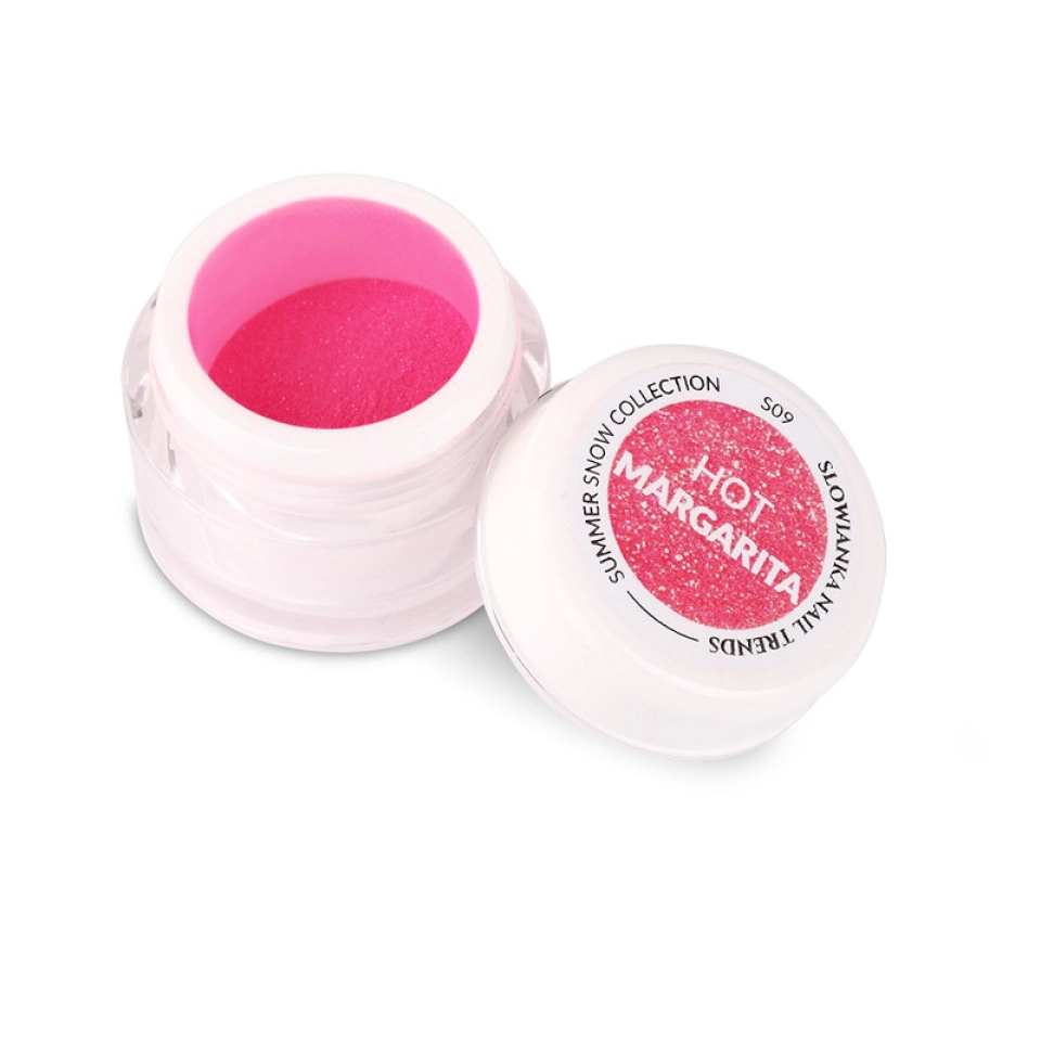 Summer Snow Hot Margarita Puder von Slowianka Trend Nails bringt Sie ins heiße Mexiko! Dieser Pollen hat eine kräftige, korallenrote Farbe, die leicht gekühlt durch Fuchsia wird. Perfekt für das Sommerstyling. Die Summer Snow Linie umfasst Nagelprodukte in Form von groben Pollen.